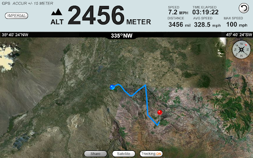 aplicativo Minhas trilhas grava seu caminho, velocidade, distância e altitude. Durante