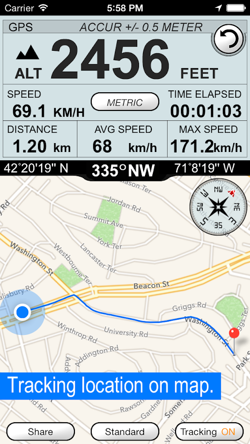 precisão em tempo real. Gps tem também uma bússola magnética.